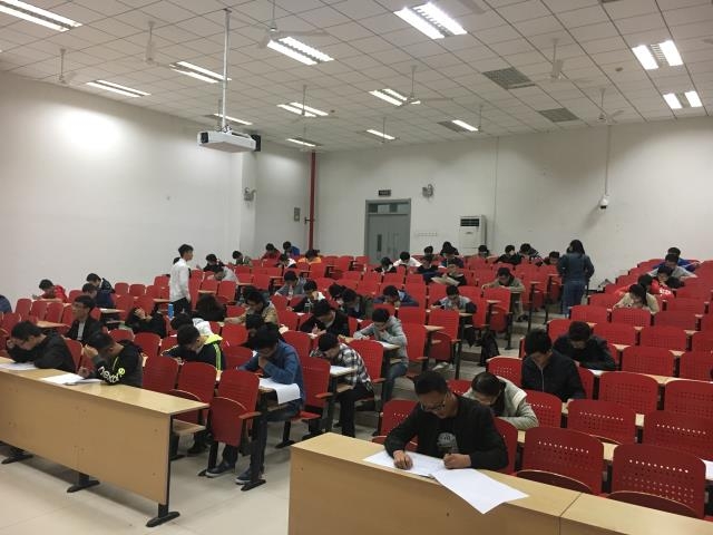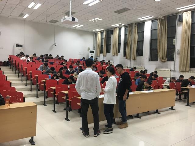 活动开始前,刘晴老师和兼职辅导员路铭老师、刘园园老师带领工作人员到竞赛现场指导活动安排,监考人员佩戴好工作证,布置黑板、整理考场、领取试卷、组织签到,活动按照预先安排的流程有条不紊地进行着,等待参赛同学到达考场。七点整,竞赛正式开始。参赛同学们整齐有序地坐在位置上认真作答。这不仅仅是一份代表着分数的测试,更是一种鞭策自我进步,提醒自己作为先进分子的责任和担当。考试完毕,大家有序离场,由党站相关负责人打扫教室并将试卷运回党站。