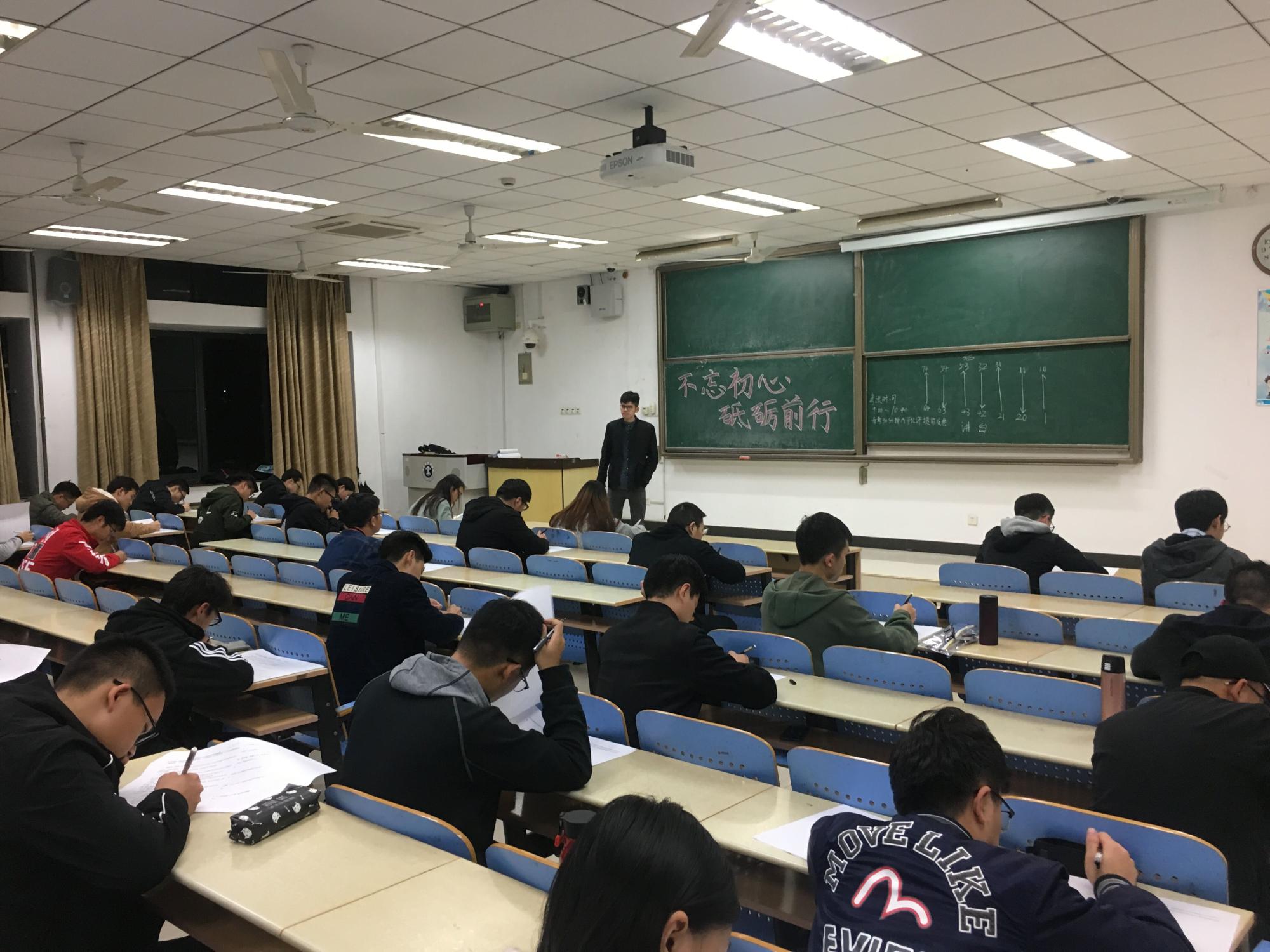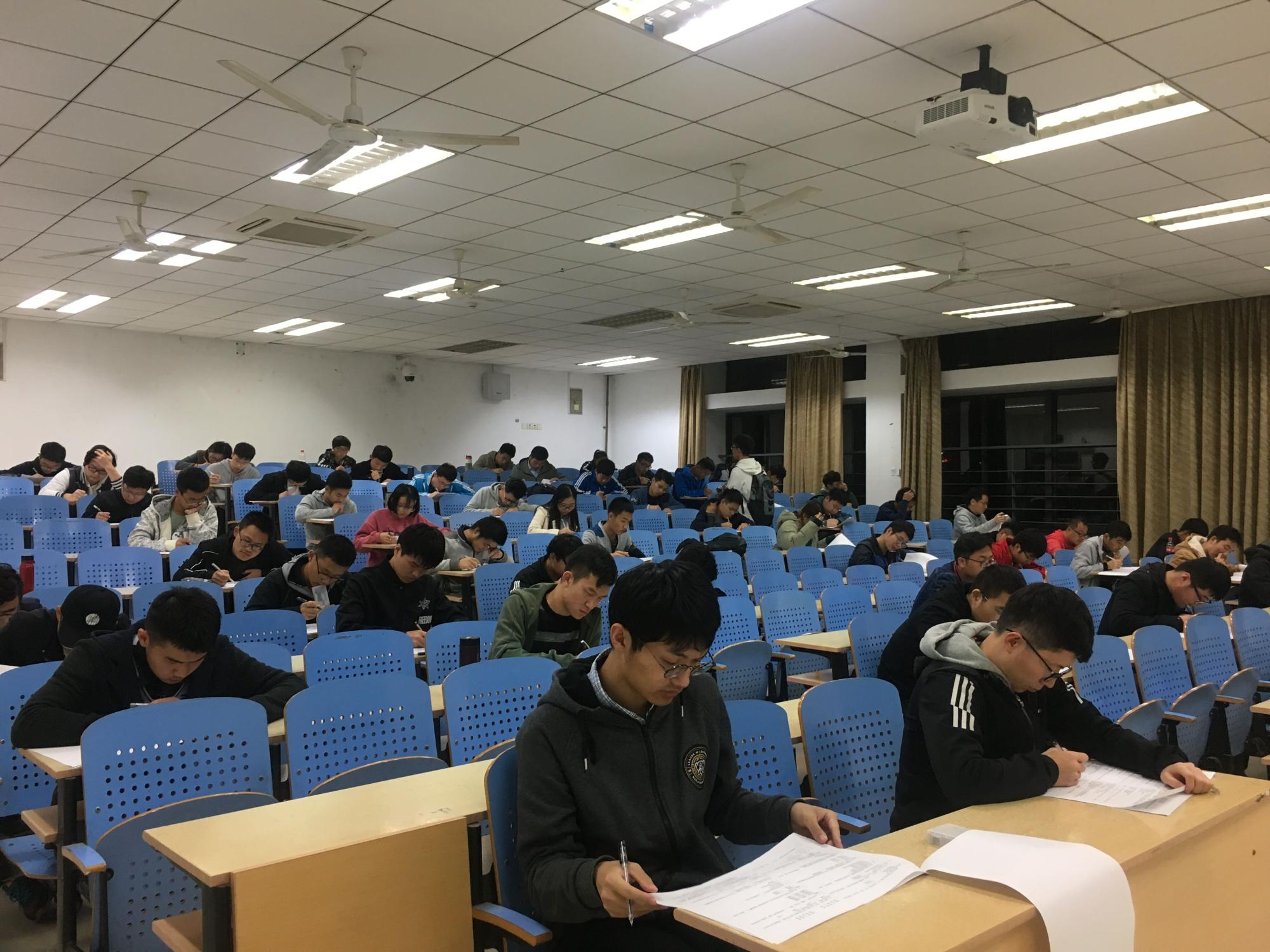 活动开始前,监考人员完成整理考场、布置黑板、领取试卷、组织签到及安排参赛同学入座等工作。九点,竞赛开始,参赛同学认真作答,活动按照预先安排的流程有条不紊地进行。考试完毕,大家有序离场,由党站相关负责人打扫教室并将试卷带回党站。
