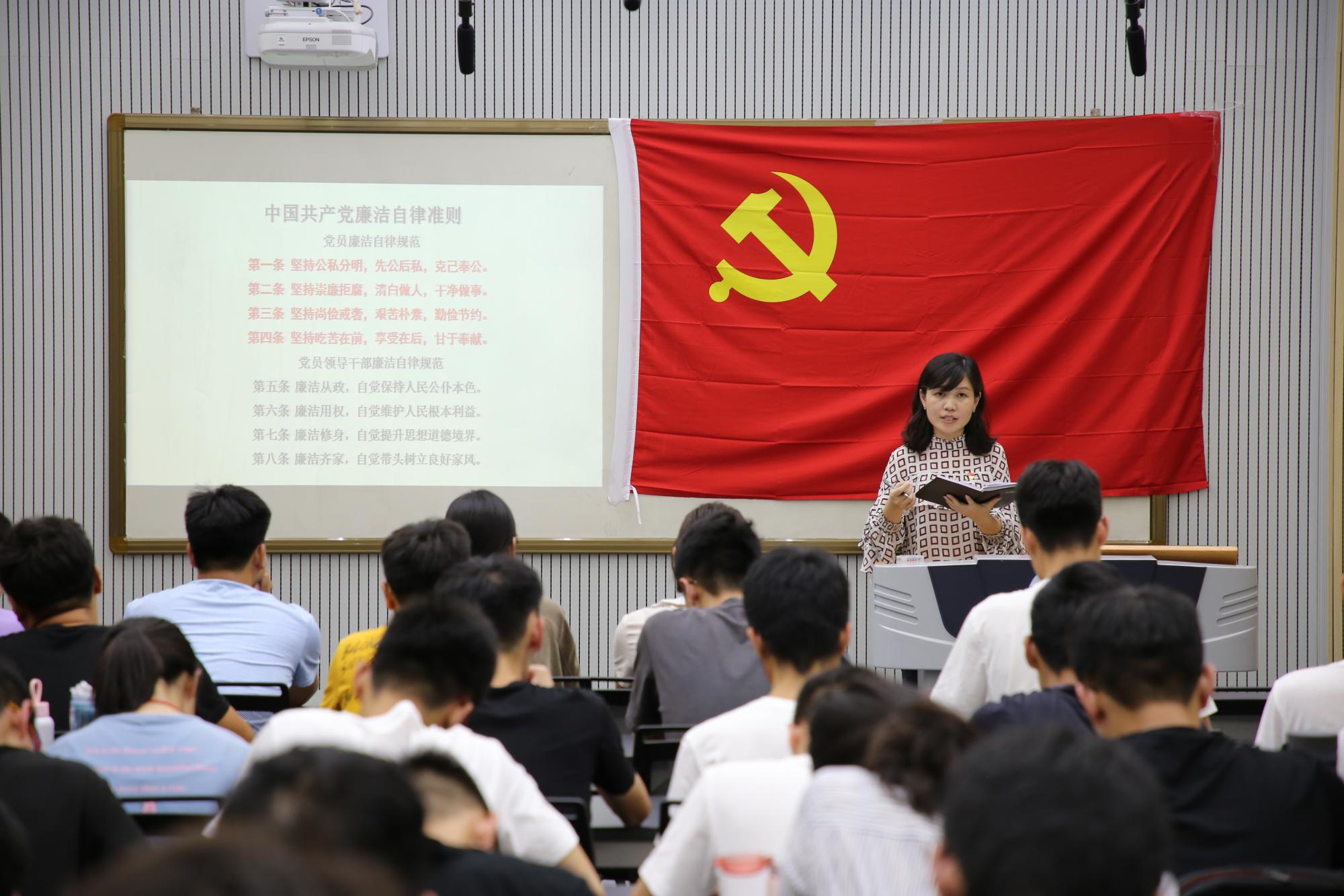 宣誓前,刘晴老师带领预备党员们学习了《关于新形势下党内政治生活的若干准则》和《中国共产党廉洁自律准则》,要求大家必须进一步坚定理想信念,旗帜鲜明讲政治。接着刘老师介绍了污污漫画党委关于党员预备期考察和转正的流程以及党员教育管理的相关制度,希望大家不忘组织的培养教育,永怀感恩之心;加强理论学习,坚定理想信念;端正学习态度,不断提升本领;强化责任和担当意识,积极主动地多做奉献,争做同学们学习的榜样和行为的表率。最后,在刘晴老师的带领下,大家面对党旗,举右拳过肩,慷慨激昂地进行了庄严的宣誓。