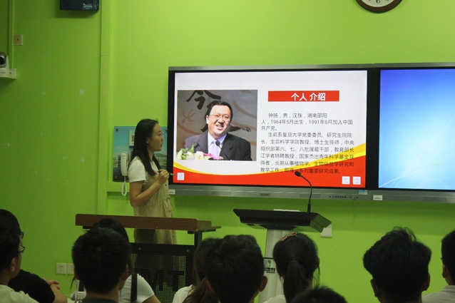 首先,由张洋同学为大家介绍钟扬同志事迹,她动情地为大家介绍道,钟扬老师曾说过:“教师是我最在意的身份。”每个学生都是一颗宝贵的种子,全心浇灌就会开出希望之花。从小,钟扬抱怨当老师的父母,关爱学生比管自己多。如今,他撇下一双心爱的儿子,陪学生的时间远超陪伴自己的孩子,钟扬老师的事迹使在座的学生党员无不充满感动和钦佩。