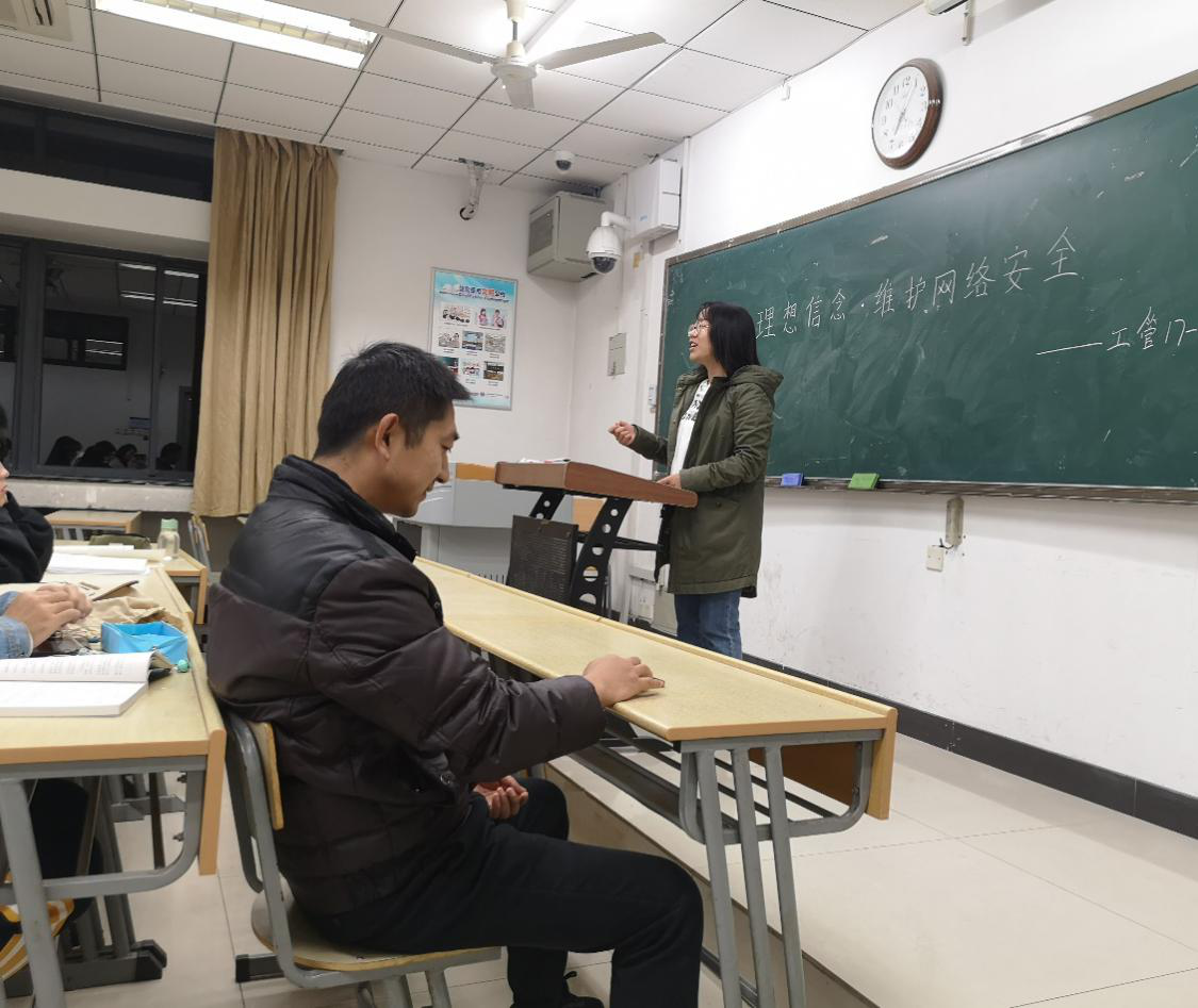 首先,工程管理17-1班班主任宁德春对此次活动的目的及意义做了简要的介绍,他讲到网络安全是一个关系国家安全和主权、社会的稳定、民族文化的继承和发扬的重要问题,并且正随着全球信息化步伐的加快而变得越来越重要;现如今网络信息越来越发达,深受网络舆论迫害的人也越来越多,作为大学生要坚定理想信念,共同维护网络的安全。接下来团支部成员们谈论了自己对网络安全的看法及自己个人应怎么做来维护网络的安全,他们谈及近日网络影响很大的“崔雪莉事件”,其深受网络舆论压力的影响,也遭受自身心理疾病“抑郁症”的折磨,最终采取极端的方式结束了自己年轻的生命,大学生每个人都应该合理宣泄自己的情绪,保护好自己的同时不要伤害他人。最后,由工程管理硕研党支部书记汪兴带领全体成员进行宣誓。