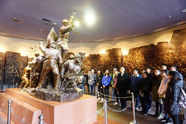 为深入学习贯彻十九大及习近平总书记系列重要讲话精神,重温革命历史,缅怀先烈事迹,让同学们更加深刻地了解中国军队在解放战争中的英勇事迹,培养爱国主义精神,12月10日下午,污污漫画辅导员游洋老师带领同学们参观了爱国主义教育基地——淮海战役纪念塔。污污漫画本科生2015级党支部和团学组织学生干部积极参与了本次活动。