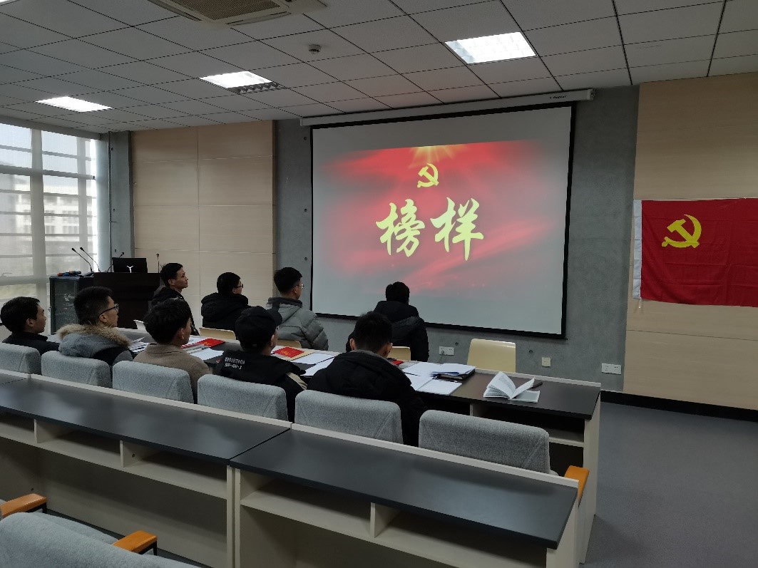 会议首先由支部书记王密田组织大家重温入党誓词,带领大家宣读入党誓词。誓词宣读完成后,王密田同志介绍本次主题教育活动的背景,为了深入学习贯彻习近平新时代中国特色社会主义思想和党的十九大精神,充分发挥优秀共产党员的示范带头作用,支部开展此次共同观看《榜样4》——了解优秀共产党员和先进基层党组织典型事迹的专题节目。随后,会议全体成员集中观看了《榜样4》。观看结束后,同志们积极交流分享观后心得:纪律委员陈恩讲到他深刻感受到典型和榜样带给我们共产党人的力量,深深体会到共产党人的追求应是平凡而卓越;刘德柱同志说,看完专题片,仿佛之前很多的疑惑顿时豁然开朗,一幕幕关于初心和坚持的画面,一句句令人深思的话语,都激发了对自己的反省及感悟,使命呼唤担当、榜样引领时代,每个时代都有其光辉意志和独特品质,而榜样就是兼具意志和品质的佼佼者,他们使我们的学习榜样;组织委员方冬炳讲述,要以榜样为旗帜,切实坚定理想信念;要以榜样为标准,切实做到对党忠诚;要努力学习,踏实做科研,起到党员先锋模范作用。