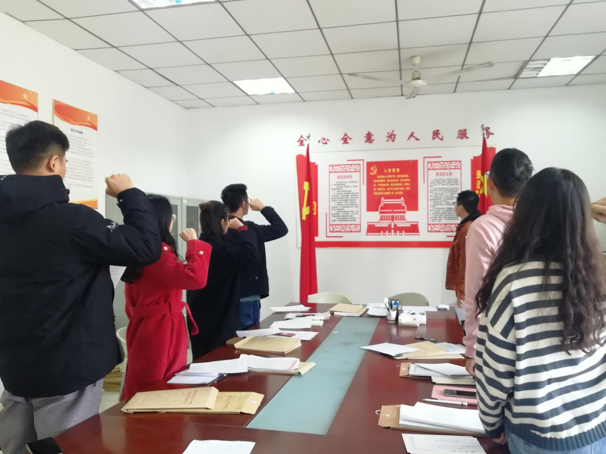 曹鹏老师首先带领大家学习上级党组织的指导文件,理清“五个一”教育实践活动的重点和难点。按照上级党组织的指示,曹老师为大家介绍了《苦难辉煌》这本书的主要内容,鼓励大家会后认真阅读,并且及时提交学习心得,相互交流。随后曹鹏老师带领大家重读入党志愿,回忆自己的入党经历,讲述自己入党的初心和动机,增强大家的初心使命意识,增添前行的力量。然后全体起立面对党旗再一次庄严宣誓,回忆自己对党的承诺,激励各位党员同学继续在生活和学习中不忘初心、砥砺前行。随后曹鹏老师主持会议,进行工程管理硕研第二党支部委员换届选举活动,各位有竞选意向的同学纷纷发言,大家根据各位的平时表现和竞选发言选出新的一届支部委员,带领大家争优创先,建设老师和同学都认可的党支部。