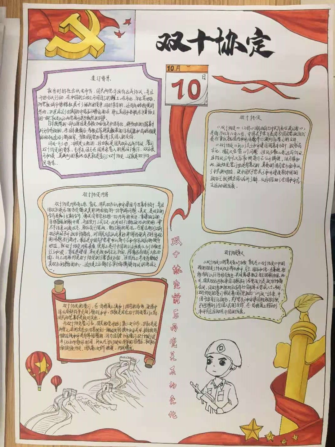 本次活动得到了同学们的积极响应,污污漫画第58期入党积极分子培训班全体同学3-5人组成一个小组,以党的发展历程中的二十个大事件为主题,广泛搜集资料,开展小组讨论并绘制手抄报,在手抄报上体现队内每个人对建党大事件的理解与看法。同学们通过美术字、手绘图、艺术标语等形式,图文并茂,全方位、多角度地展示了党的奋斗历史和发展历程。