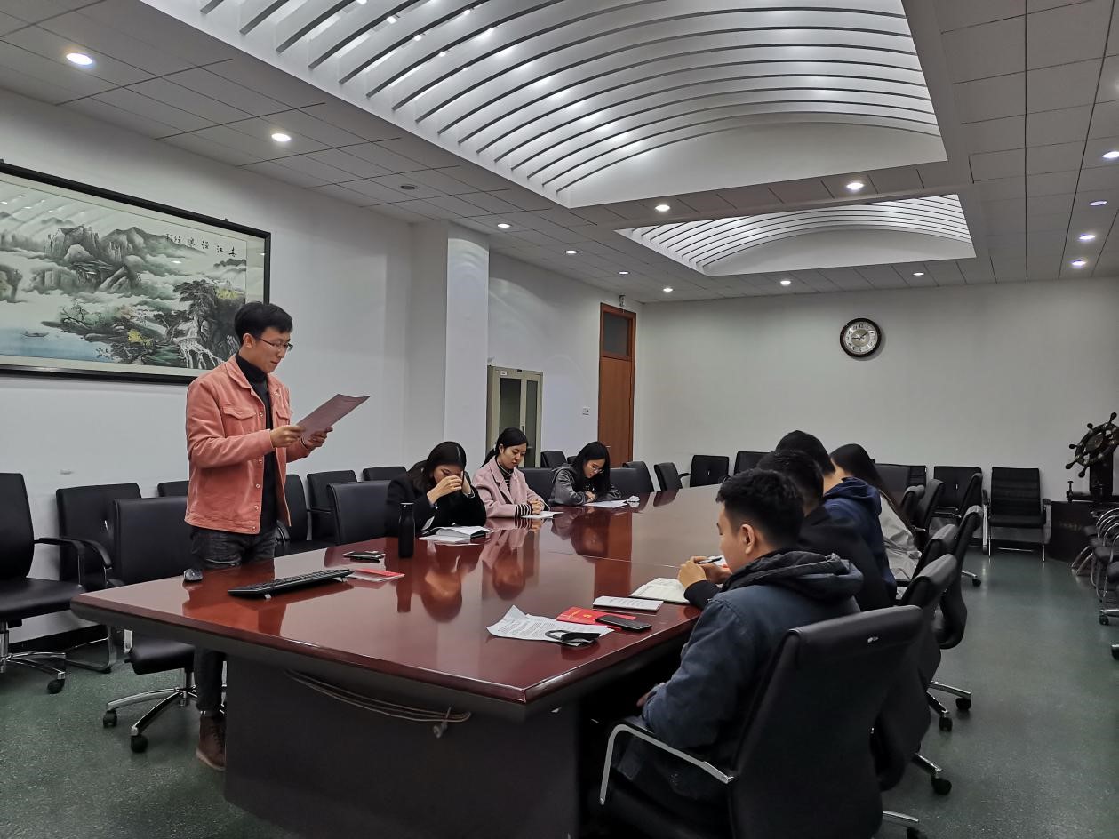 晚上7点半,党日活动正式开始。首先,支部书记杨晨同志带领全体党员学习了中国共产党第十九届中央委员会第五次全体会议精神,习近平总书记在纪念中国人民志愿军抗美援朝出国作战70周年大会上的重要讲话,习近平总书记在深圳经济特区建立40周年庆祝大会上重要讲话以及党史、新中国史、改革开放史、社会主义发展史学习资料汇编。通过学习使大家深入了解中国共产党和中国工农红军艰苦卓绝斗争历程,学习了老一辈共产党人以生命坚守理想信念和面对困难百折不挠的意志。接着,全体党员宣读了个人《入党志愿书》,通过回顾入党经历,讲述入党故事,增强初心使命意识,增添前行力量。最后,全体成员面向党徽重温了一遍入党誓词,让誓词入脑入心。提醒全体党员要时刻牢记初心使命,对党忠诚,积极工作,争做一名“让党放心,让人民满意”的合格党员。