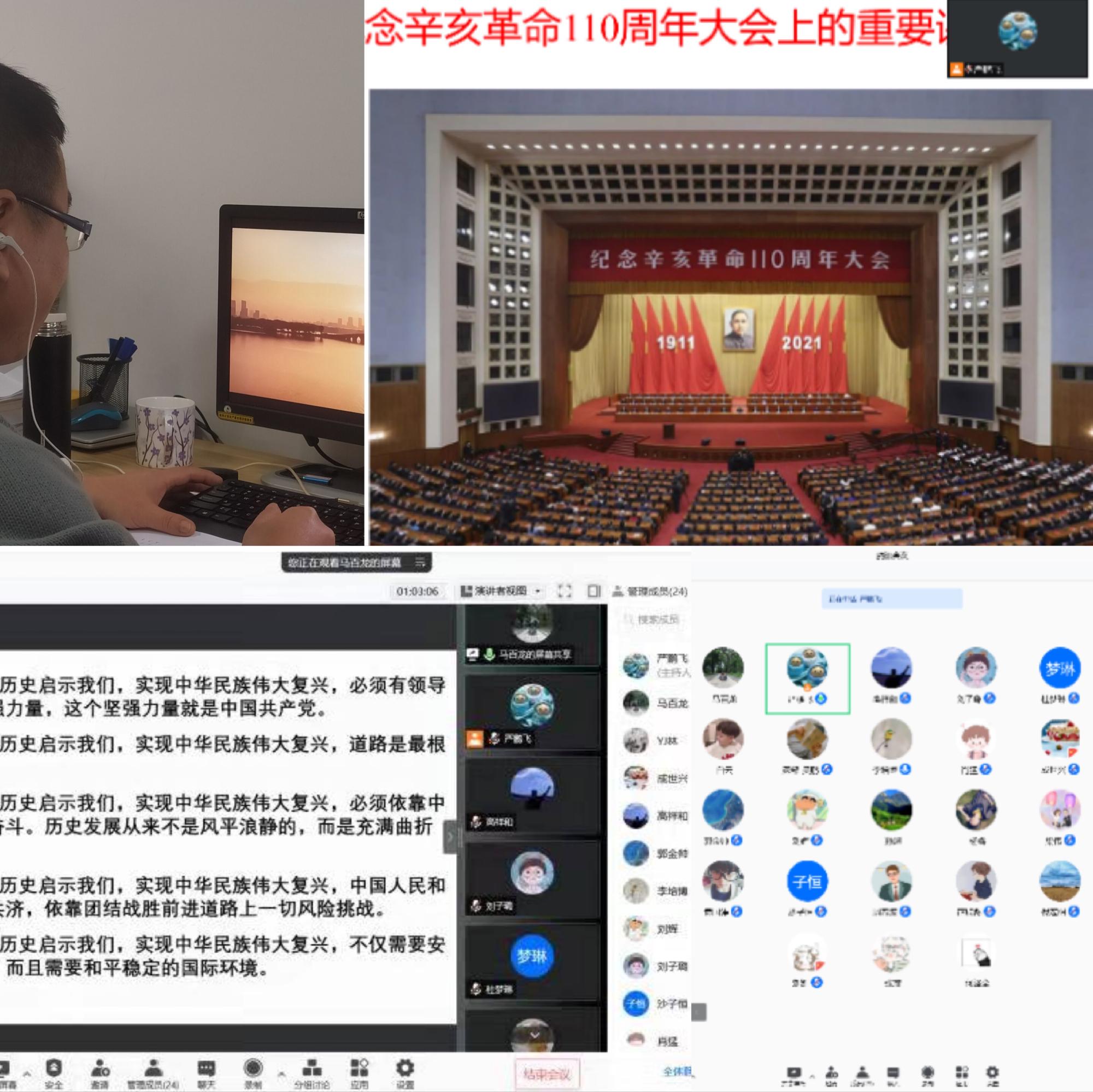 学生党员们重温了习近平总书记在纪念辛亥革命110周年大会和中华人民共和国恢复联合国合法席位50周年纪念会议上的两次重要讲话、中国共产党第十九届中央委员会第六次全体会议精神、《关于<中共中央关于党的百年奋斗重大成就和历史经验的决议>的说明》等重要内容。博研岩土党支部党员孙培鑫表示:中华民族是遭受暴力伤害深重的民族,因此对于和平有更加强烈的向往。面对外界复杂敌对势力的挑衅,唯有发展,自强,才能带来真正的和平。如今轮到我们,一定要不忘使命,守护和平。工程管理硕研第二党支部预备党员陈亚风认为:学生党员应时刻牢记孙中山先生和辛亥革命先驱为中华民族建立不朽功勋,学习和弘扬他们为振兴中华而矢志不渝的崇高精神,在全面建设社会主义现代化国家新征程上担当属于我们这一代人的历史使命,为培养堪当民族复兴大任的时代新人作出应有贡献。