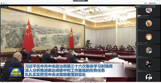 党支部集中观看了习近平在中共中央政治局第三十六次集体学习上的讲话并展开讨论。党支部书记曹文瑶认为:实现碳达峰、碳中和,是党中央深思熟虑、主动作出的重大战略决策,它不仅仅是单一的技术、能源、气候环境问题,而是一场影响广泛而深刻的经济社会变革,势必将对未来几十年我国经济、能源、产业、科技、投资、金融等方面发展产生重大影响。预备党员张月认为:碳排放与我们的日常生活息息相关。“双碳”目标的达成是一个系统性工程,不能只靠国家、政府和各大企业的努力,更需要我们每一位党员躬体力行。