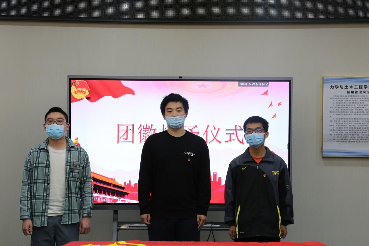 仪式开始,曹旭杰、陈镆、祁俊文三位同学在领誓人的带领下进行了入团宣誓。随后,由团支书为三位同学佩戴团徽,三位同学依次发表入团感言。三位同学表示,能够成为共青团员,他们感到非常自豪,在日后的学习和工作生活中,他们也将不断丰富政治理论知识,提高政治觉悟,成为担当民族复兴大任的时代新人。接下来,张锌亿同学带领大家学习了习近平总书记在庆祝中国共青团成立100周年大会上的讲话,进一步加深了团员们对共青团光辉历程的了解以及如何做一名合格的共青团员的认识。仪式结束之际,马小川同学总结发言,他说:“作为一名共青团员,一是要坚持入团初心,脚踏实地,甘于奉献;二是要不断夯实专业知识,构建自己的知识体系,掌握专业技能;三是要锤炼高尚品格,牢固树立共产主义远大理想和中国特色社会主义共同理想,牢记习近平总书记对青年的嘱托,做新时代的有为青年。”