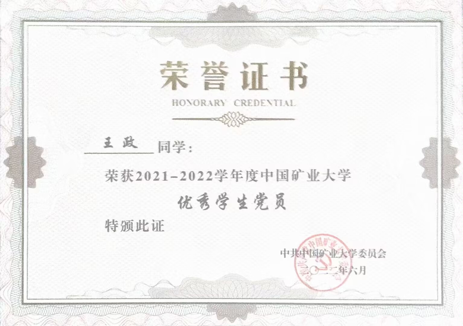 在院学生会任职期间,王政积极改革学生会制度,创办新型活动,连续两年以全校第一名取得“标兵学生会”荣誉称号。