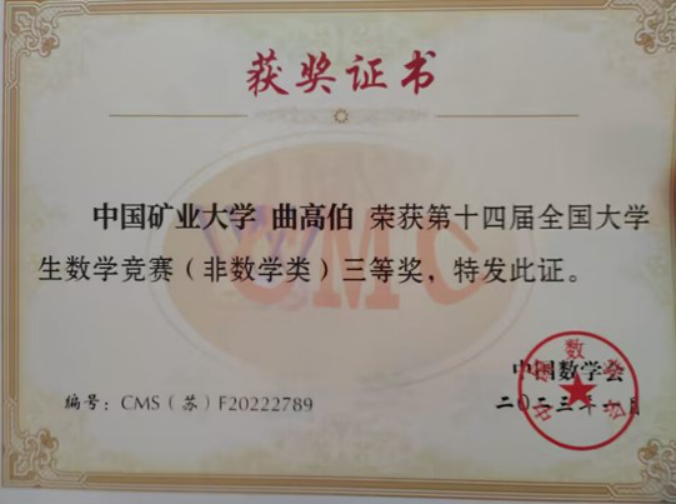 在2023年,曲高伯参加了诸多竞赛并获得了优异的成绩。其中在暑假,他参加了江苏省基础实验力学的团体赛,希望能在实验动手操作方面有比较大的提升。曲高伯在备赛并去往南京理工大学参加比赛的这半个多月的时间里收获良多,同时他在自己不懈努力下通过了面试,如愿以偿地跟随深地国重的浦海老师进行深造。
